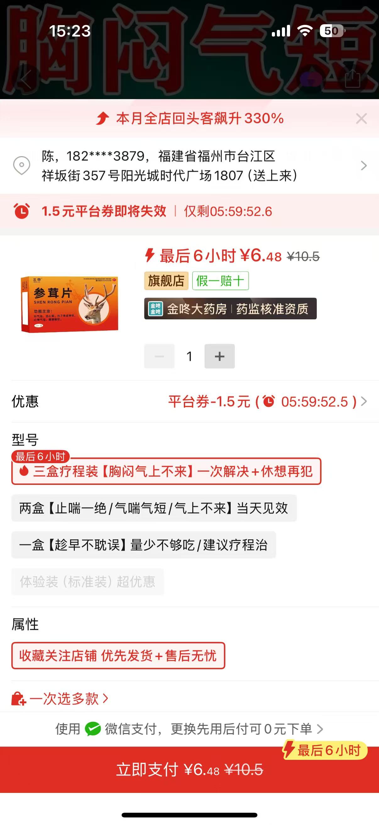 ++③參茸片3盒:https://mobile.yangkeduo.com/goods1.html?ps=NyNgaZlULz